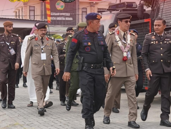 Komandan Satuan (Dansat) Brimob Polda Bali, Kombes Pol. Rachmat Hendrawan, S.I.K., M.M., menerima kunjungan kehormatan dari delegasi Kepolisian Saudi Arabia, yang dipimpin oleh The Assistant Director of Public Security Affairs, Abdullah Abdulrahman the Al-Hamad, di Markas Komando (Mako) Brimob Tohpati pada hari Kamis, 30 Oktober 2025.