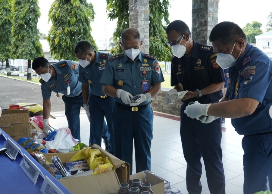 Dalam kegiatan Press Release yang digelar di Joglo Mako Kodaeral VIII, Dankodaeral VIII Laksda TNI Dery Triesananto Suhendi, S.E., M.Tr.Opsla., menyampaikan bahwa operasi berhasil dilakukan berkat informasi intelijen dan koordinasi cepat antara unsur Kodaeral VIII, Bea Cukai Manado, serta KSOP Pelabuhan Manado, Rabu (5/11/2025).