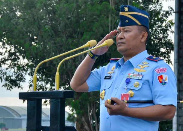 Komandan Lanud Halim Perdanakusuma, Marsma TNI Erwin Sugiandi, M.Han. bertindak selaku Inspektur Upacara pada pelaksanaan upacara bendera mingguan yang berlangsung di Apron Utara Wing Udara 1 Lanud Halim Perdanakusuma, Senin (24/11/2025).