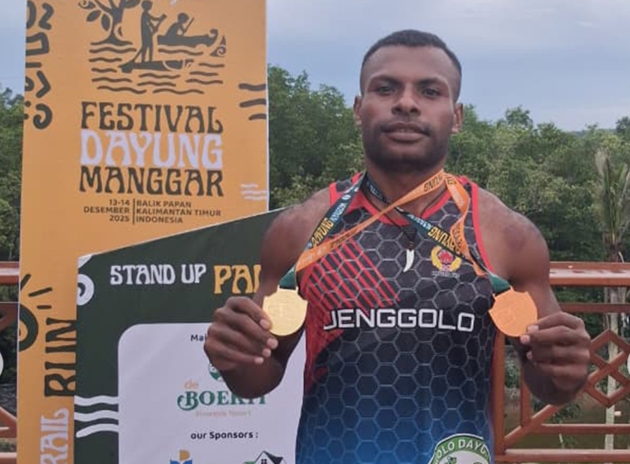 Prajurit Satu (Pratu) Daniel Kabey tampil gemilang pada ajang Festival Dayung Manggar 2025, event olahraga dan pariwisata bertaraf internasional yang digelar di Kota Balikpapan, Minggu (14/12/2025).