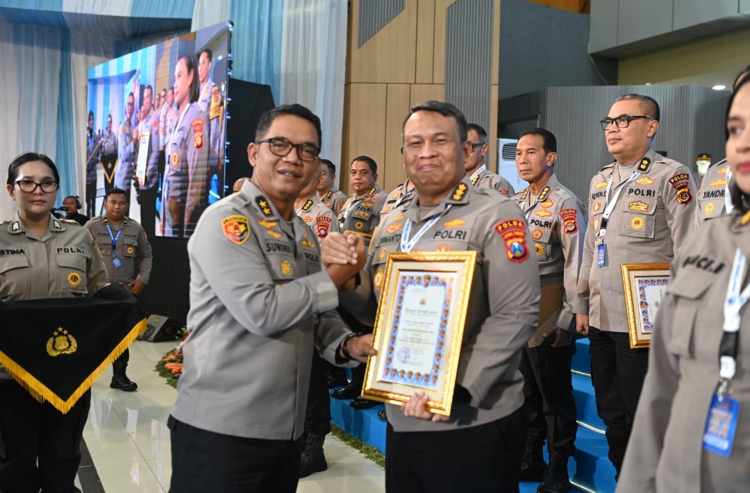 Penghargaan tersebut diserahkan oleh Aslog Kapolri, Irjen Pol Suwondo Naingholan, S.I.K,M.H kepada Kepala Biro Logistik (Karolog) Polda Jatim, Kombes Pol Dirmanto pada kegiatan Monitoring dan Evaluasi (Monev) Logistik Polri Tahun 2025 di Jakarta, Senin (8/12/2025).