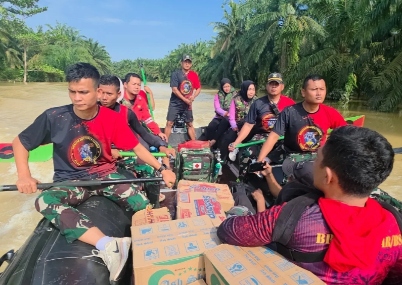 Dalam kondisi tersebut, prajurit Korps Marinir TNI Angkatan Laut menembus banjir pekat dan merapatkan perahu hingga ke pintu-pintu rumah warga yang terisolasi, di wilayah Kec. Sei Lepan, Kec. Babalan, dan Kec. Besitang, Kab. Langkat, Sumatera Utara, Rabu (03/12/2025).