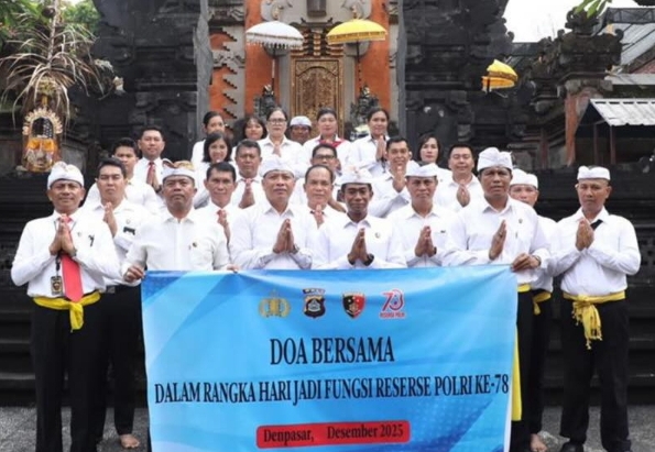 Dalam rangka memperingati Hari Ulang Tahun (HUT) Reserse Polri ke-78, Polda Bali menggelar kegiatan doa bersama yang berlangsung khidmat di Pura Linggarcana Polda Bali, Senin, (8/12/2025).