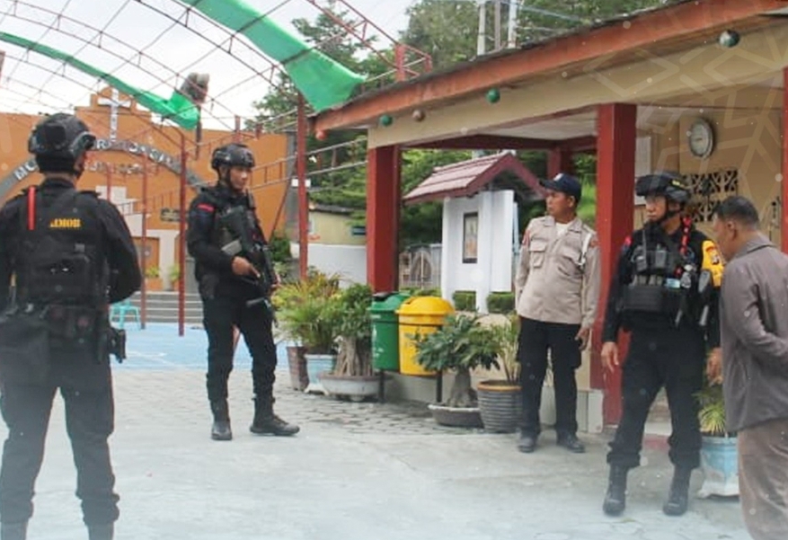Operasi Lilin Tinombala 2025 melalui Satuan Tugas (Satgas) V Tindak Brimob Polda Sulteng melaksanakan kegiatan patroli dan pengecekan ke sejumlah tempat ibadah di Kota Palu, Sulawesi Tengah. Senin (22/12/2025).