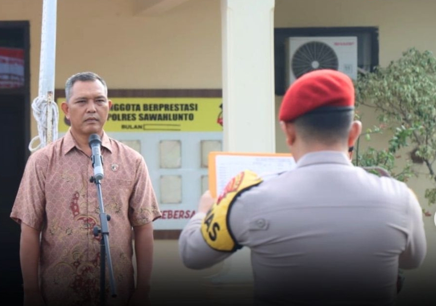 Personel Polres Sawahlunto melaksanakan apel pagi sebagai bentuk kesiapan dan kedisiplinan dalam pelaksanaan tugas kepolisian sehari-hari.