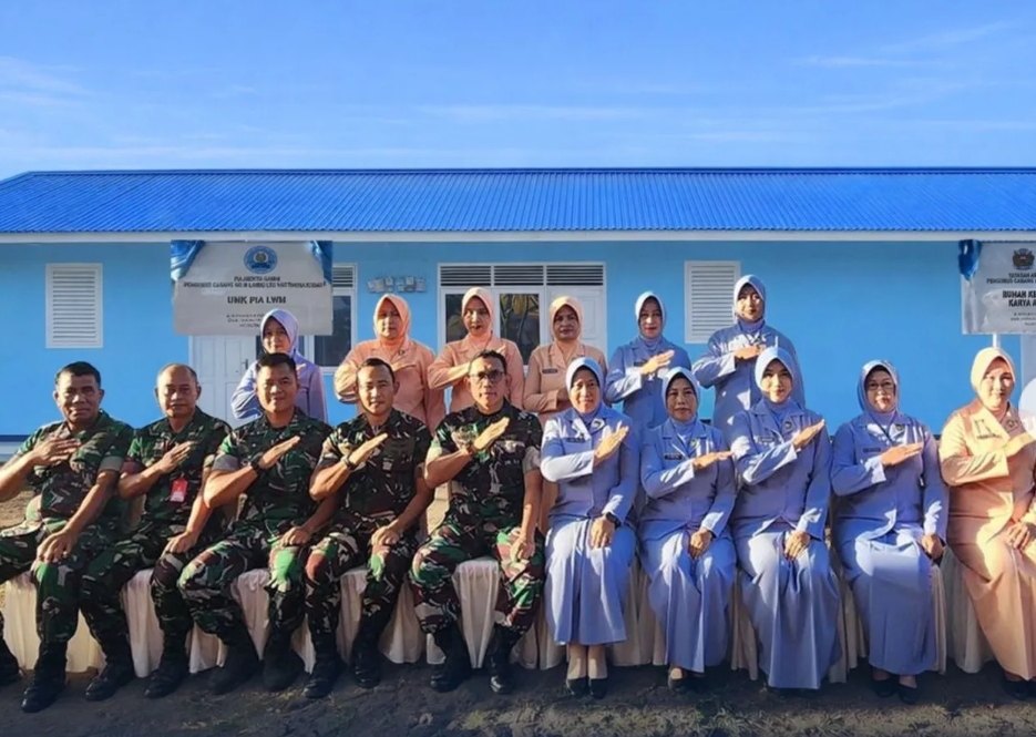 Komandan Lanud Leo Wattimena, Kolonel Pnb Anang Heru Setiyono, S.E., M.M., M.Han., didampingi Ketua PIA Ardhya Garini Cabang 6/D.III Lanud Leo Wattimena Kodau III, Ny. Anung Anang Heru Setiyono, meresmikan Rumah Keterampilan “Karya Asih Garini” dan UMK PIA Lanud Leo Wattimena yang berlokasi di Desa Darame, Morotai Selatan, pada Jumat (30/1/2026).