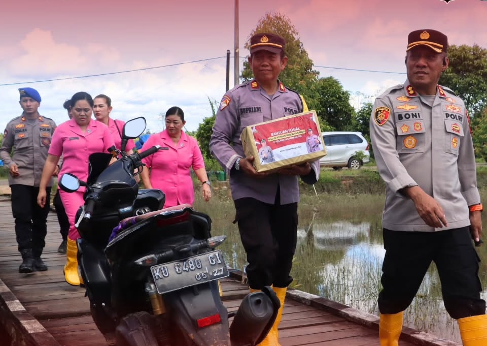 Selain menyerahkan bantuan langsung kepada warga, Kapolres Nunukan juga menyerahkan bantuan sosial kepada Posko BPBD Kecamatan Sembakung sebagai bentuk dukungan terhadap upaya penanganan dan pemulihan pascabencana.