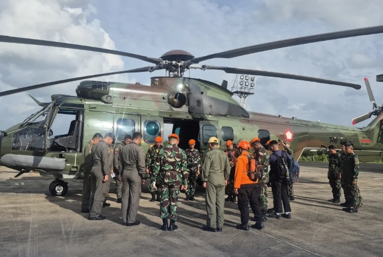 TNI Angkatan Udara dalam hal ini Lanud Sultan Hasanuddin mengerahkan Helikopter H225M Caracal H-2213 untuk membantu pencarian pesawat ATR-42-500 milik Indonesia Air Transport (IAT) yang dilaporkan hilang kontak pada Sabtu (17/1/2026).