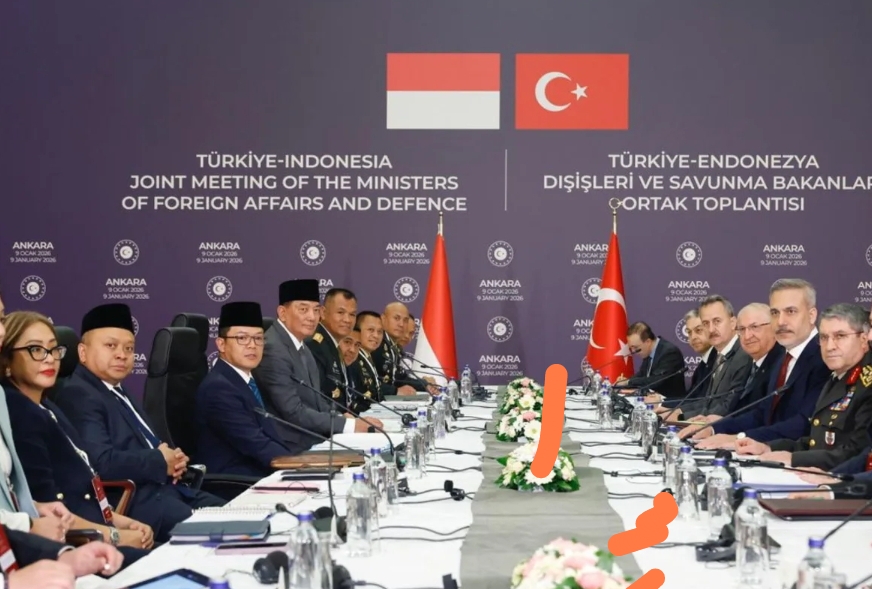 Menteri Luar Negeri RI Sugiono bersama Menteri Pertahanan RI Sjafrie Sjamsoeddin memimpin delegasi Indonesia dalam Pertemuan 2+2 Indonesia – Turki yang digelar di Ankara, Turki, pada Jumat (9/1/2026).