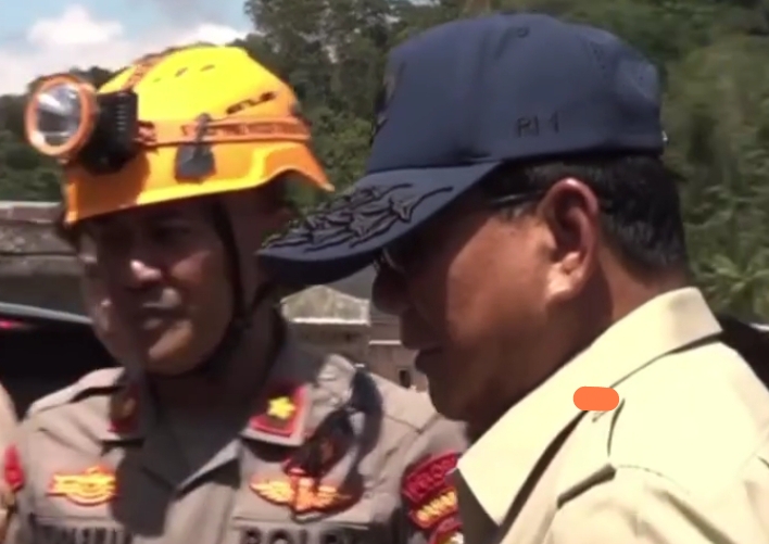Pada kesempatan tersebut, Presiden Prabowo sempat menyapa anggota Polri yang bertugas membangun jembatan bailey Sungai Garoga.