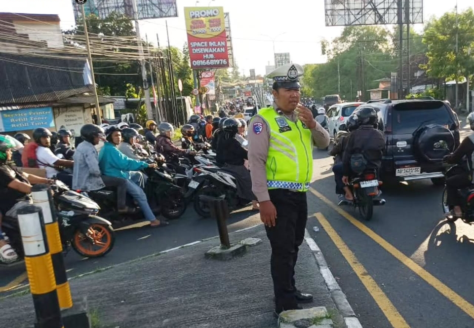 Personel piket Unit Lantas bersama Unit Samapta secara aktif melaksanakan pemantauan dan pengaturan arus lalu lintas serta menyampaikan imbauan tertib berlalu lintas kepada masyarakat.